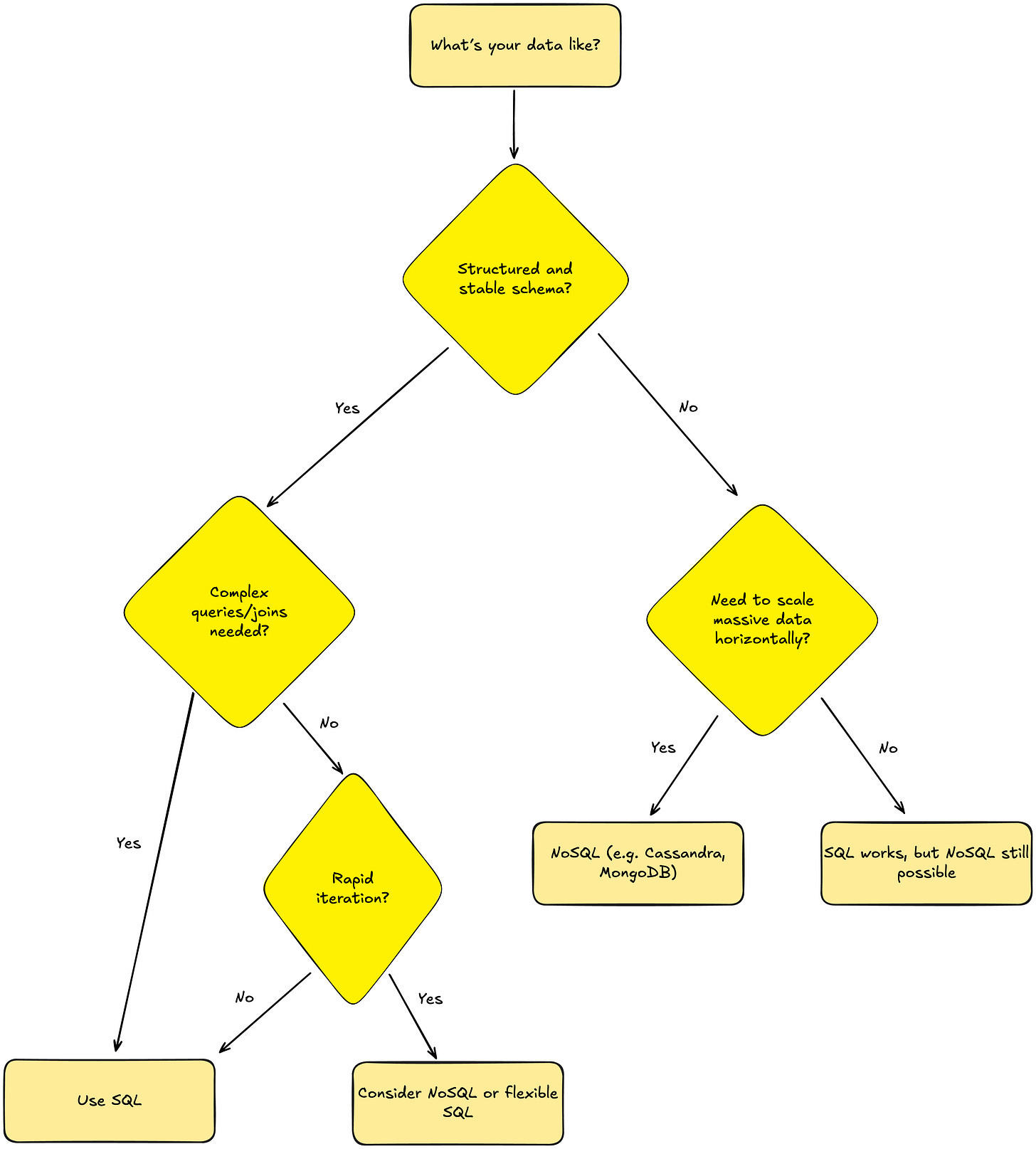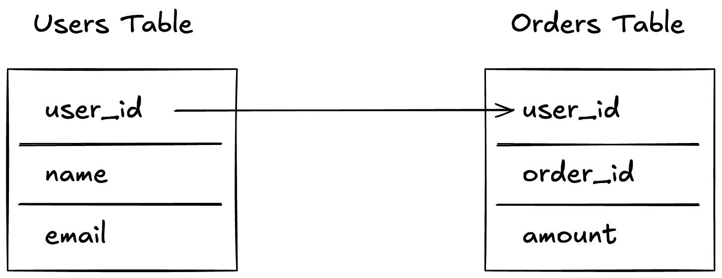 SQL: Structured data in tables with predefined schemas. Relationships between tables via JOINs.