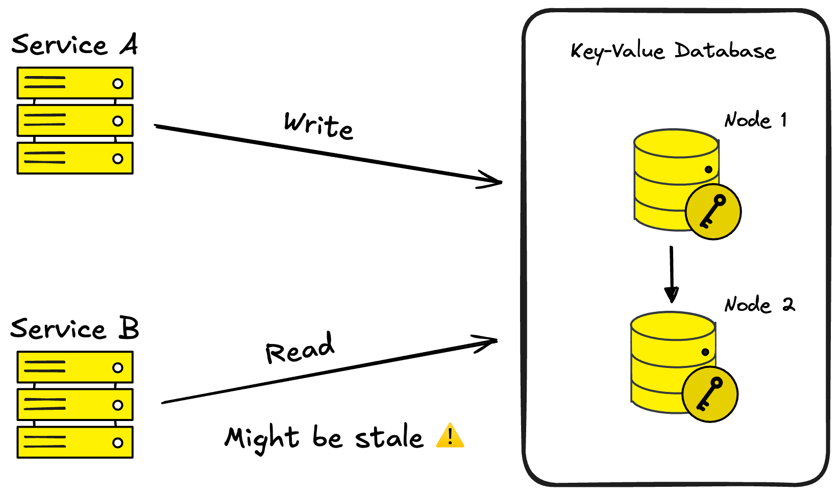 Eventual Consistency - Writes take time to propagate across nodes