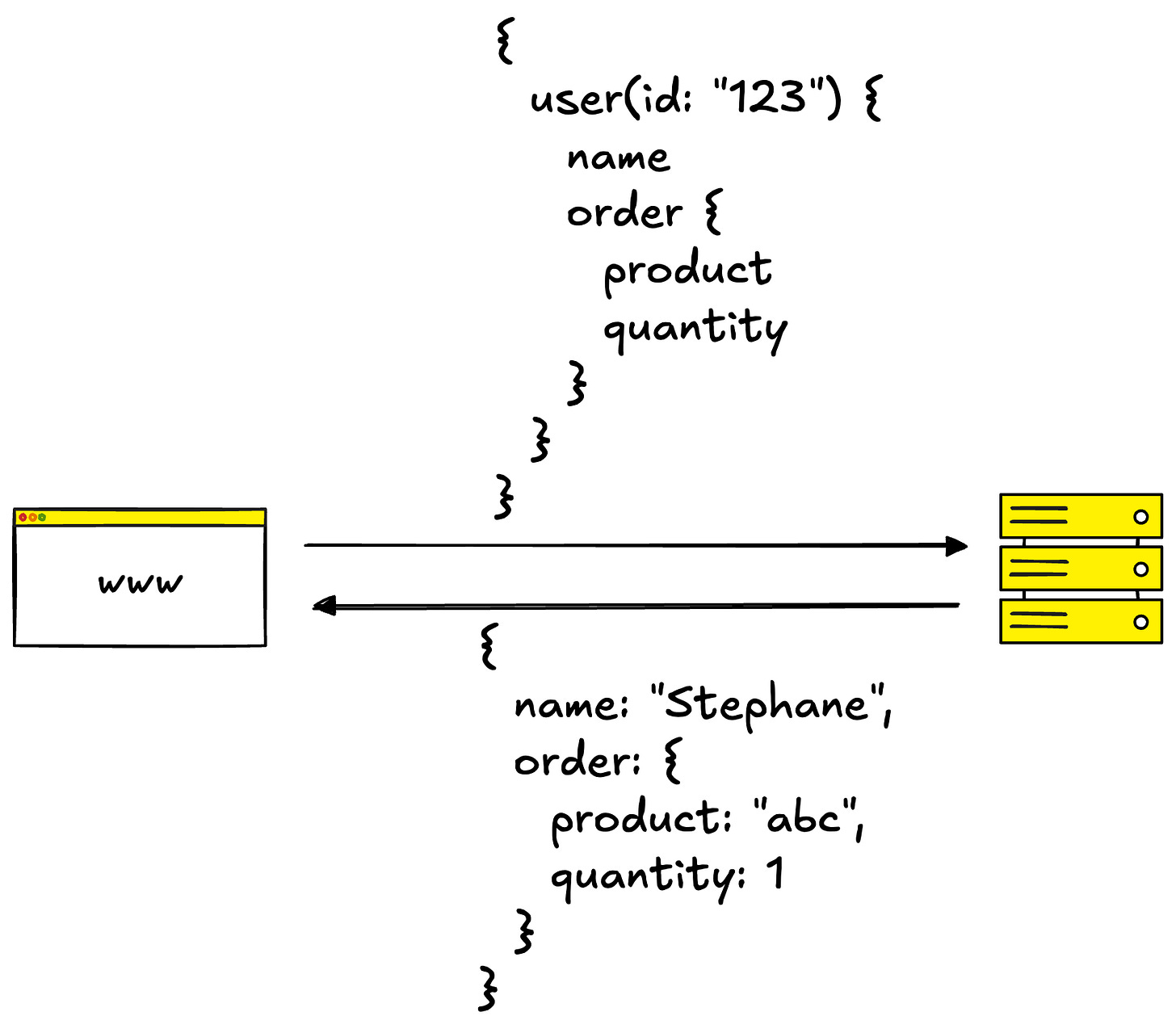 GraphQL flips the model. Instead of multiple endpoints, you have a single endpoint (typically /graphql). The client sends a query specifying exactly what data it needs.