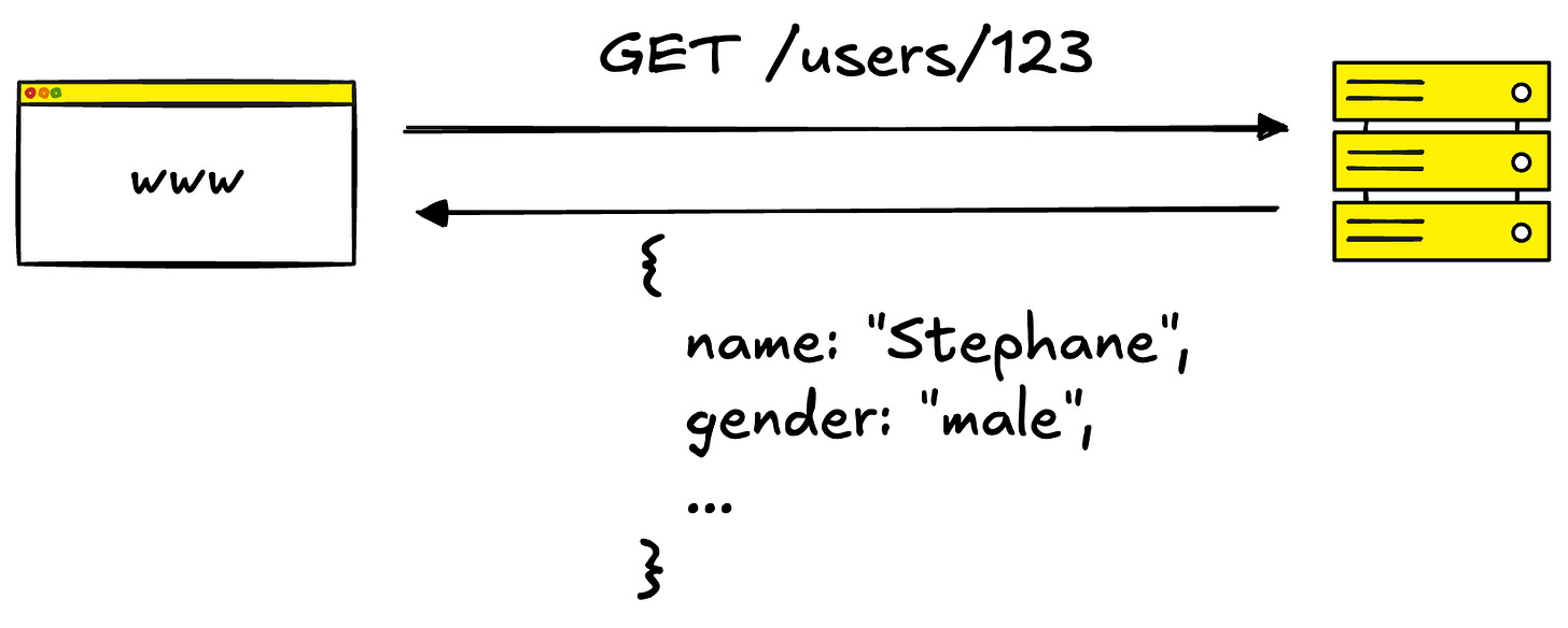 The server decides what data each endpoint returns. If you call GET /users/123, you get whatever fields the backend team decided to include: name, email, address, preferences, etc.